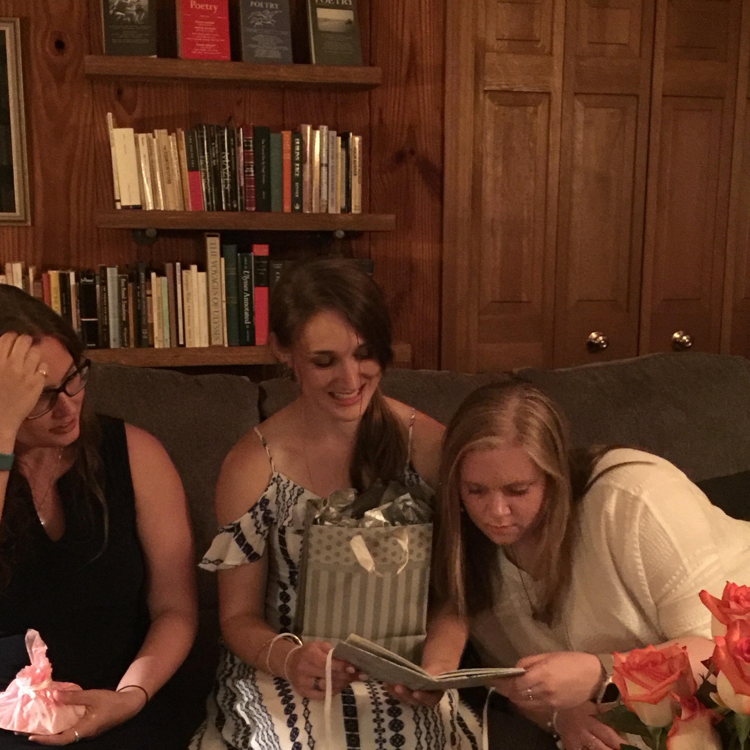 My other sister (the one who just got married) held her wedding rehearsal in what used to be literary scholar Hugh Kenner’s house. Who knew you could AirBnb it? There were shelves upon shelves of Modernist poetry and books reflecting his other (widely ranging!) interests—and the library turned out to be the perfect setting for giving my sister this little handmade book with personal notes from the bridal party. We Sisterhood-of-the-Traveling-Pantsed this book in the months before the wedding. It’s just a single gathering of thick paper, sewn onto a scrap piece of bookcloth, and then attached to boards. I haven’t bound anything in a while, but I think it turned out all right.